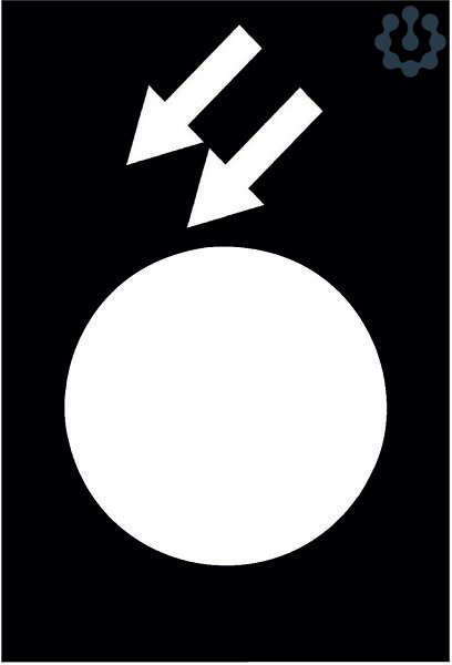 Beschriftete Bezeichnungsschild 30x40mm - schwarz - beschriftet mit umgekehrtem, schnellem Symbol. Es ist ein Zubehör der Baureihe Harmony XAC Hängetaster für 22-mm-Kunststoff-Signaleinheiten mit Durchmesser.