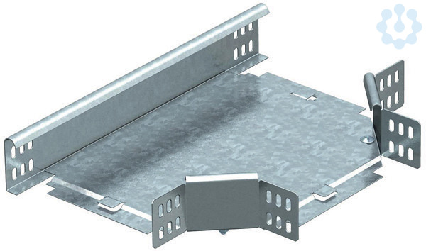 T-Abzweigstück horizontal für alle Kabelrinnentypen mit der Seitenhöhe 60 mm. Bodenblech mit angeformter Stoßstellenleiste. Keine separaten Verbinder notwendig, denn Kabelrinne wird einseitig in den Holm des Formteils eingeschoben und mit Winkelverbinder Typ WKV verschraubt.