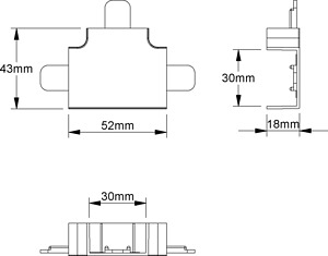 T-Stück 90°, mit Laschen, die Befestigung erfolgt durch die angrenzenden Deckelstücke, halogenfrei. für Elektroinstallationskanal