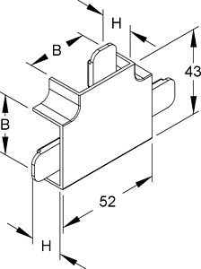 T-Stück 90°, mit Laschen, die Befestigung erfolgt durch die angrenzenden Deckelstücke. für Elektroinstallationskanal