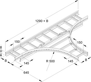 T-Stück, mit durchgehend perforierten und profilierten Seitenholmen, mit eingenieteten Sprossen aus C-Profilen mit 16 mm Schlitzweite, zur Herstellung von horizontalen 90° T-Abgängen. Stoßstellenverbinder KLVB 60/4 bitte separat bestellen. Passende Bügelschellen (B...). Zur Verwendung im Funktionserhalt bitte Zusatzvorschriften beachten!