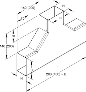 durchgehende Kanalgröße H x B = abgehende Kanalgröße H x B
