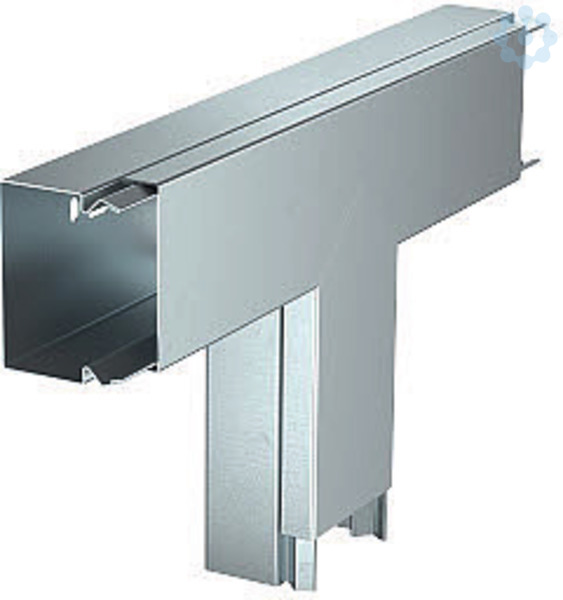 T-Stück mit Oberteil zur Richtungsänderung der Leitungsführungskanäle LKM. Der Potentialausgleich ist ohne weitere Hilfsmittel zwischen Unter- und Oberteil gewährleistet.