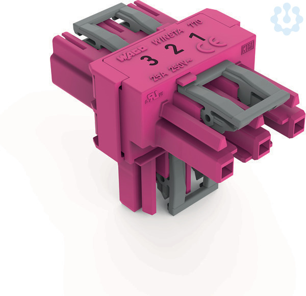 T-Verteiler. 3-polig. Kod. B. 1 Eingang. 2 Ausgänge. 3 Verriegelungsklinken. für fliegende Verbindungen. pink