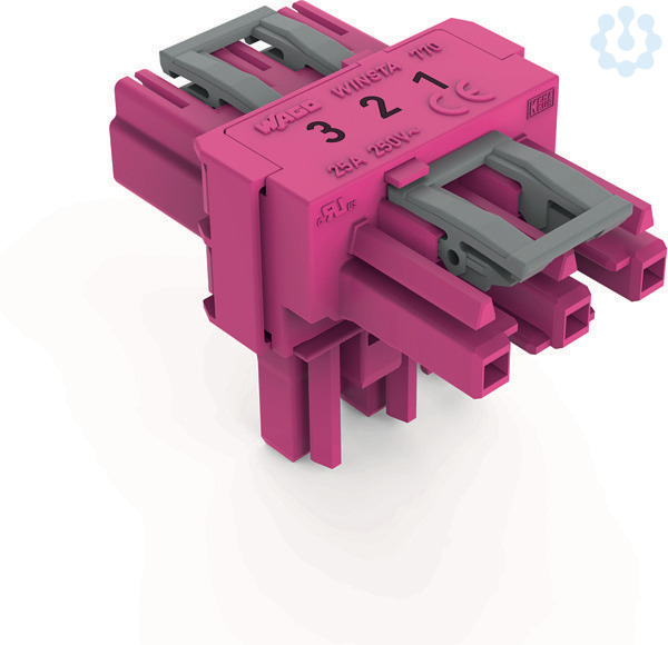 T-Verteiler. 3-polig. Kod. B. 1 Eingang. 2 Ausgänge. 2 Verriegelungsklinken. pink