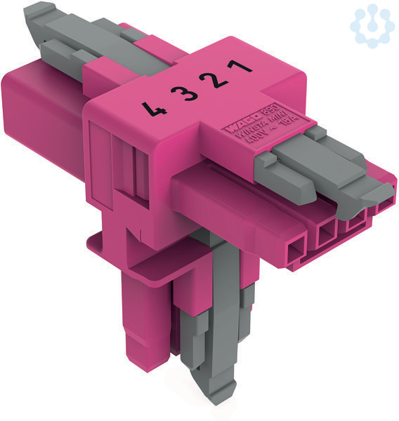 T-Verteiler. 4-polig. Kod. B. 1 Eingang. 2 Ausgänge. 2 Verriegelungsklinken. pink