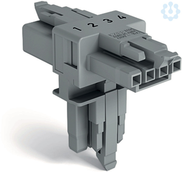 T-Verteiler. 4-polig. Kod. B. 1 Eingang. 2 Ausgänge. 3 Verriegelungsklinken. für fliegende Verbindungen. grau