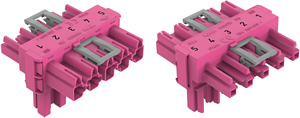 T-Verteiler. 5-polig. Kod. B. 1 Eingang. 2 Ausgänge. 2 Verriegelungsklinken. pink