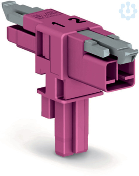 T-Verteiler. 2-polig. Kod. B. 1 Eingang. 2 Ausgänge. 2 Verriegelungsklinken. pink