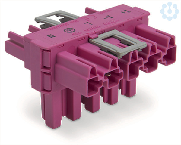T-Verteiler. 5-polig. Kod. B. 1 Eingang. 2 Ausgänge. 2 Verriegelungsklinken. pink