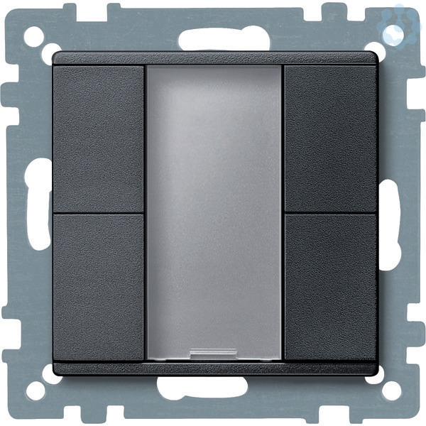 Im Design System M. Mit integriertem Busankoppler. Taster mit 4 Bedientasten, Betriebs-, Statusanzeige und Schriftfeld. Die Betriebsanzeige kann auch als Orientierungslicht verwendet werden. Das Gerät wird über eine Busanschlussklemme mit der Busleitung verbunden. Softwarefunktionen KNX Schalten, Umschalten, Dimmen (ein-/zweiflächig), Jalousie (ein-/zweiflächig). Flanken löst 1,- 2-, 4- oder 8-Bit-Telegramme aus (Unterscheidung kurze/lange Betätigung). Flanken mit 2-Byte-Telegrammen (Unterscheidung kurze/lange Betätigung), 8-Bit-Schieberegler, Szenenabruf, Szenenspeicherung, Sperrfunktionen. Zubehör Beschriftungsbogen für Taster 6183xx Lieferumfang Mit Putzschutzhaube. Mit Busanschlussklemme. Material Thermoplast edelmatt. Farbe anthrazit.