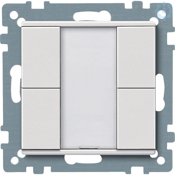Im Design System M. Mit integriertem Busankoppler. Taster mit 4 Bedientasten, Betriebs-, Statusanzeige und Schriftfeld. Die Betriebsanzeige kann auch als Orientierungslicht verwendet werden. Das Gerät wird über eine Busanschlussklemme mit der Busleitung verbunden. Softwarefunktionen KNX Schalten, Umschalten, Dimmen (ein-/zweiflächig), Jalousie (ein-/zweiflächig). Flanken löst 1,- 2-, 4- oder 8-Bit-Telegramme aus (Unterscheidung kurze/lange Betätigung). Flanken mit 2-Byte-Telegrammen (Unterscheidung kurze/lange Betätigung), 8-Bit-Schieberegler, Szenenabruf, Szenenspeicherung, Sperrfunktionen. Zubehör Beschriftungsbogen für Taster 6183xx Lieferumfang Mit Putzschutzhaube. Mit Busanschlussklemme. Material Thermoplast edelmatt. Farbe polarweiß.