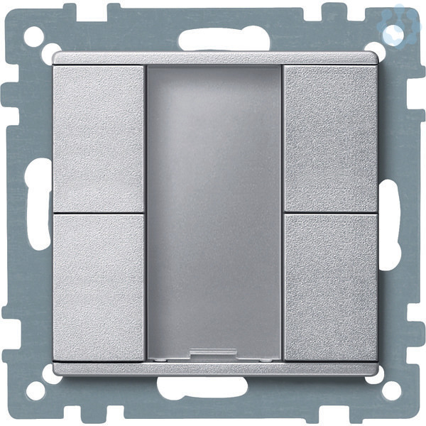 Im Design System M. Mit integriertem Busankoppler. Taster mit 4 Bedientasten, Betriebs-, Statusanzeige und Schriftfeld. Die Betriebsanzeige kann auch als Orientierungslicht verwendet werden. Das Gerät wird über eine Busanschlussklemme mit der Busleitung verbunden. Softwarefunktionen KNX Schalten, Umschalten, Dimmen (ein-/zweiflächig), Jalousie (ein-/zweiflächig). Flanken löst 1,- 2-, 4- oder 8-Bit-Telegramme aus (Unterscheidung kurze/lange Betätigung). Flanken mit 2-Byte-Telegrammen (Unterscheidung kurze/lange Betätigung), 8-Bit-Schieberegler, Szenenabruf, Szenenspeicherung, Sperrfunktionen. Zubehör Beschriftungsbogen für Taster 6183xx Lieferumfang Mit Putzschutzhaube. Mit Busanschlussklemme. Material Thermoplast edelmatt. Farbe aluminium.