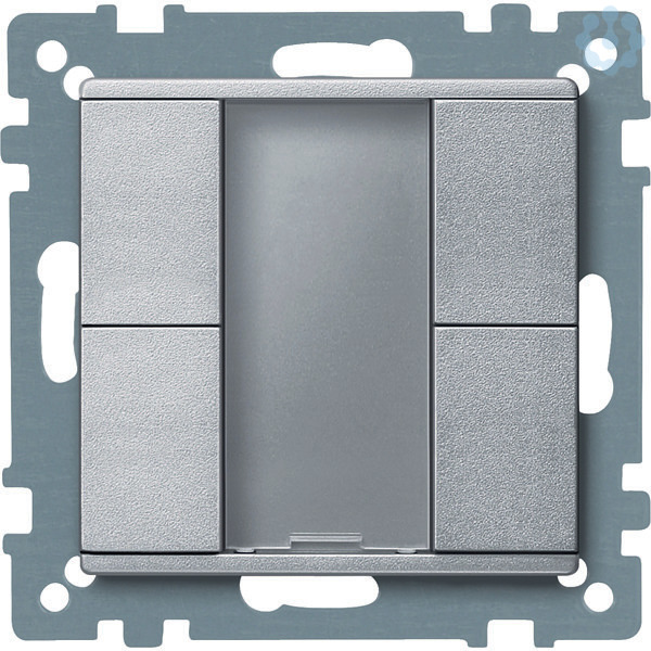 Im Design System M. Mit integriertem Busankoppler. Taster mit 4 Bedientasten, Betriebs-, Statusanzeige und Schriftfeld. Die Betriebsanzeige kann auch als Orientierungslicht verwendet werden. Das Gerät wird über eine Busanschlussklemme mit der Busleitung verbunden. Softwarefunktionen KNX Schalten, Umschalten, Dimmen (ein-/zweiflächig), Jalousie (ein-/zweiflächig). Flanken löst 1,- 2-, 4- oder 8-Bit-Telegramme aus (Unterscheidung kurze/lange Betätigung). Flanken mit 2-Byte-Telegrammen (Unterscheidung kurze/lange Betätigung), 8-Bit-Schieberegler, Szenenabruf, Szenenspeicherung, Sperrfunktionen. Zubehör Beschriftungsbogen für Taster MTN6183xx Lieferumfang Mit Putzschutzhaube. Mit Busanschlussklemme. Material Thermoplast edelmatt. Farbe aluminium.