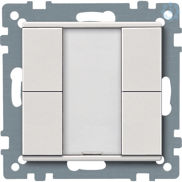 Im Design System M. Mit integriertem Busankoppler. Taster mit 4 Bedientasten, Betriebs-, Statusanzeige und Schriftfeld. Die Betriebsanzeige kann auch als Orientierungslicht verwendet werden. Das Gerät wird über eine Busanschlussklemme mit der Busleitung verbunden. Softwarefunktionen KNX Schalten, Umschalten, Dimmen (ein-/zweiflächig), Jalousie (ein-/zweiflächig). Flanken löst 1,- 2-, 4- oder 8-Bit-Telegramme aus (Unterscheidung kurze/lange Betätigung). Flanken mit 2-Byte-Telegrammen (Unterscheidung kurze/lange Betätigung), 8-Bit-Schieberegler, Szenenabruf, Szenenspeicherung, Sperrfunktionen. Zubehör Beschriftungsbogen für Taster MTN6183xx Lieferumfang Mit Putzschutzhaube. Mit Busanschlussklemme. Material Thermoplast edelmatt. Farbe polarweiß.