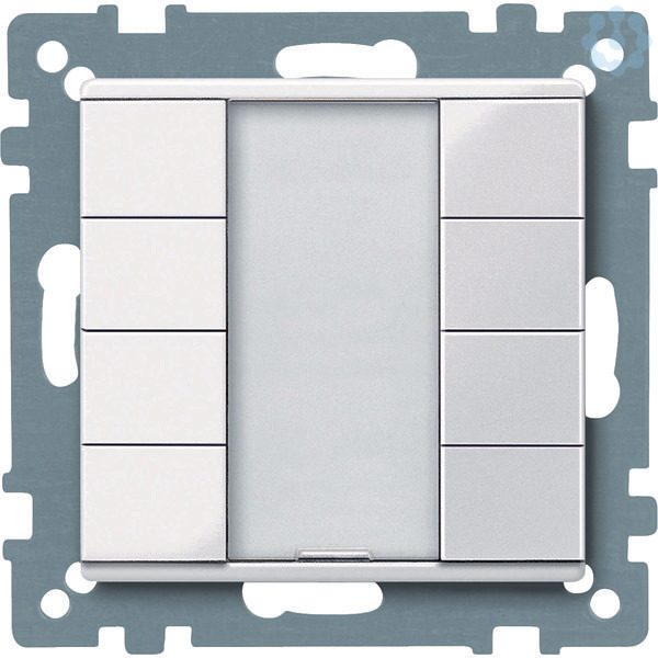 Im Design System M. Mit integriertem Busankoppler. Taster mit 8 Bedientasten, Betriebs-, Statusanzeige und Schriftfeld. Die Betriebsanzeige kann auch als Orientierungslicht verwendet werden. Das Gerät wird über eine Busanschlussklemme mit der Busleitung verbunden. Softwarefunktionen KNX Schalten, Umschalten, Dimmen (ein-/zweiflächig), Jalousie (ein-/zweiflächig). Flanken löst 1,- 2-, 4- oder 8-Bit-Telegramme aus (Unterscheidung kurze/lange Betätigung). Flanken mit 2-Byte-Telegrammen (Unterscheidung kurze/lange Betätigung), 8-Bit-Schieberegler, Szenenabruf, Szenenspeicherung, Sperrfunktionen. Zubehör Beschriftungsbogen für Taster MTN6183xx Lieferumfang Mit Putzschutzhaube. Mit Busanschlussklemme. Material Thermoplast brillant, antibakteriell. Glatte und selbstdesinfizierende Oberfläche mit antibakterieller Wirkung. Farbe ähnlich RAL 9016. Farbe aktivweiß glänzend.