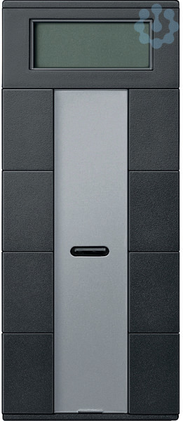 Im Design System M. Komfortable Steuerungseinheit mit 8 Bedientasten, Betriebs-, Statusanzeige und Schriftfeld. Die Betriebsanzeige kann auch als Orientierungslicht verwendet werden. Mit Raumtemperaturregler und Display. Mit integriertem Piezo-Summer zur Anzeige von Alarmzuständen und IR-Empfänger. Mittels IR-Fernbedienung können alle Funktionen der jeweiligen Tasten angesteuert werden. Mit 9 roten LEDs. Der Raumtemperaturregler ist für Heizung und Kühlung mit stufenlos verstellbaren KNX-Stellantrieben oder zur Ansteuerung von Schaltaktoren und Heizungsaktoren verwendbar. Mit weiß hinterleuchtetem Display zur Darstellung von z. B. Uhrzeit, Datum, Temperatur und Betriebsmodus. Menü zur Einstellung von Standard-Betriebsarten, Sollwert, Arbeitstag/arbeitsfreier Tag (externe Ansteuerung), Anzeigemodus, Uhrzeit, Schaltzeiten und Helligkeit des Displays. Die Tasten sind als Tastenpaar (zweiflächig) oder als Einzeltasten frei parametrierbar. Mit integriertem Busankoppler. Der Busanschluss erfolgt über eine Busanschl