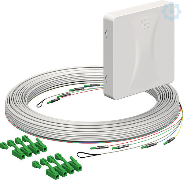 Teilnehmeranschluss Gf-TA E3S Connect®, Aufputz, 4xF, LC/APC DX, L=20m, Gf-GV, vorkonfektioniert, shutter, LC/APC