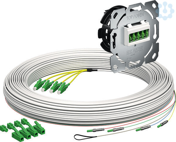 Teilnehmeranschluss (Gf-TA) E3S Connect®, Unterputz, 4xF, LC/APC DX, L=90m, HÜP (4250064). Spleißkassetten Anzahl: 1 | Faseranzahl: 4 | Kabellänge: 90 m