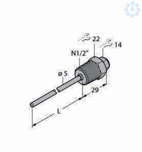 Zubehör, Schutzrohr, für Temperatursensoren, Schutzrohr zur Montage von Temperaturfühlern, Fühlerdurchmesser 3 mm, Prozessanschluss 1/2?NPT Außengewinde, Eintauchtiefe 150 mm
