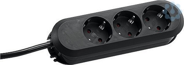 Tischsteckdose SMART 3fach schwarz, mit erhöhtem Berührungsschutz Zuleitung 5,0m H05VV-F 3G1,5mm² CEE7/7 Stecker geschraubt. öffenbar. Polybeutel mit Header
