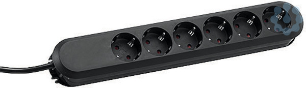 Tischsteckdose SMART 6fach schwarz, öffenbar, ohne Schalter mit erhöhtem Berührungsschutz, 3m H05VV-F 3G1,5mm² Schutzkontaktsteckdosen geschraubt, im Polybeutel mit Header