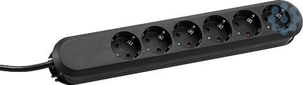 SMART Steckdosenleiste 6-fach, schwarz ohne Schalter, mit erhöhtem Berührungsschutz, 5,0m H05VV-F 3G1,5mm² mit Schutzkontakt-Stecker geschraubt, verpackt im Polybeutel.