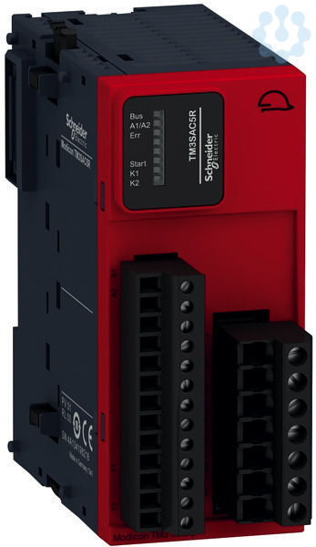 Erweiterungsmodule. TM3 integrierte Sicherheit, Not-Halt/Not-Aus CAT3, Schraubklemme. Abnehmbare Klemmenleisten mit Schraubklemmen oder Federklemmen, im Lieferumfang des TM3-Moduls enthalten. Verwendung für SPS Steuerung M221, M241 und M251.