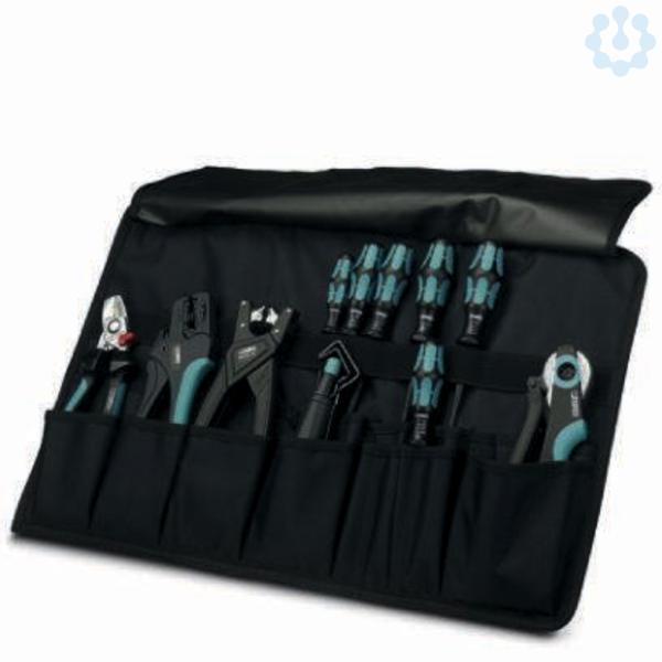Werkzeug-Wickeltasche, bestückt mit: Kabelschneider, Abisolierwerkzeuge für Standardleiter von 0,08 mm² ... 16 mm², Abmantelwerkzeug bis Ø 40 mm, Aderendhülsenzange CRIMFOX CENTRUS 6H für Leiter von 0,14 mm² ... 6 mm², VDE Schraubendreher,schlanke Ausführung, Schlitz: 0,6x3,5 /0,8x4,0 /1,0x5,5, Kreuz: PH1/PH2/PZ1/PZ2