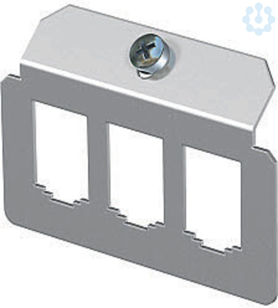 Trägerplatte zur Aufnahme von 3 Anschlussbuchsen der Datentechnik folgender Typen: BTR: E-DAT Dätwyler: MS und MS-N Kerpen: VarioKeystone. Abmessung einer Montageöffnung in mm: 19,35/21,55 x 14,85.