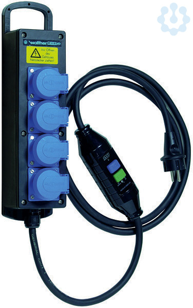 Abgänge/ Absicherung: 1 Personenschutzschalter (PRCD-S) 2P 16A/30mA 4 Schutzkontaktsteckdosen