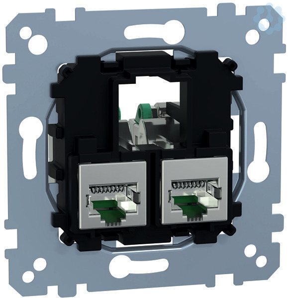 Anschluss über Schneid-Klemmtechnik (werkzeugfrei). Zu komplettieren mit Zentralplatte für Schneider Electric-Connector 2fach System M MEG4574-03xx/-04xx, System Design MEG4572-60xx Zentralplatte mit Schriftfeld für Schneider Electric-Connector 2fach System Design MEG4574-60xx.