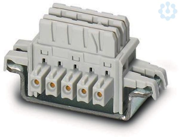 Tragschienen-Busverbinder für die modulübergreifende Potenzialbrückung von nebeneinander angeordneten Geräten.