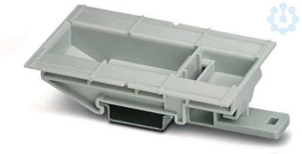 Tragschienenadapter zur Montage eines Gehäuses UCS 125-87-H (lange Seite) oder UCS 145-125-H (kurze Seite) auf einer Tragschiene NS 35, wird anstelle einer Seitenwand UCS SW 125 in das Gehäuse gesetzt, Material: Polycarbonat, Farbe: lichtgrau ähnlich RAL 7035