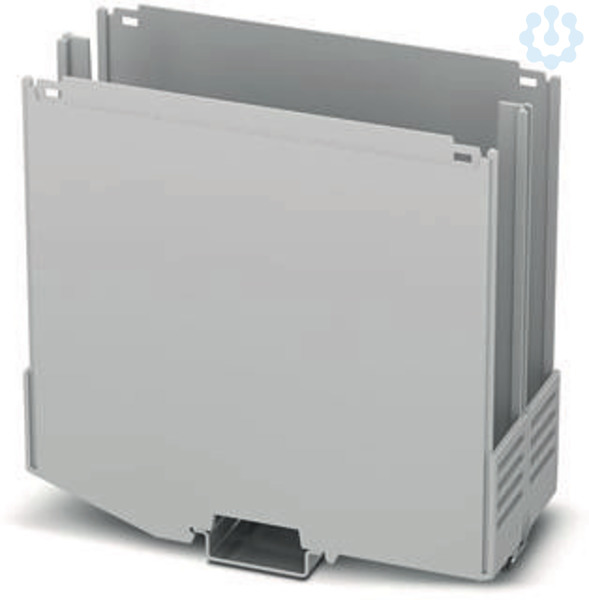 Tragschienengehäuse, Gehäuseunterteil mit Metallfußriegel, Etage 1: mit Lüftungsschlitzen, Breite: 50,1 mm, Höhe: 122,5 mm, Tiefe: 108,35 mm, Farbe: lichtgrau (7035), Querverbindung: Tragschienen-Busverbinder (optional), Polzahl Querverbinder: 8