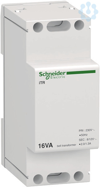 Klingeltransformator Acti 9 iTR. Ausgang 8-12V AC aus 230V Niederspannungsnetz, Leistung 16VA. Mit Klingel- und Sicherheitstransformatoren können Kleinspannungen aus einem Niederspannungsnetz entnommen werden. Kurzschlussfest. Schutzklasse II mit Klemmenabdeckung (optional). Der Klingeltransformator iTR erfüllt folgende Normen- EN 61558-2-6 und EN 60742.