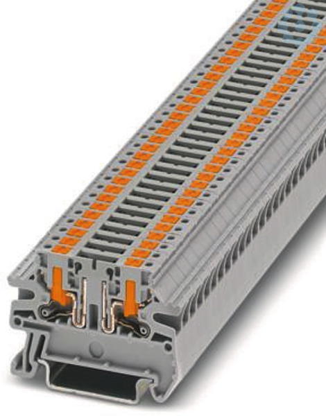 Trennklemme, Nennspannung: 800 V, Nennstrom: 24 A, Anschlussart: Push-in-Anschluss, Querschnitt: 0,14 mm² - 4 mm², AWG: 26 - 12, Länge: 50,8 mm, Breite: 5,2 mm, Farbe: grau, Montage: NS 35/7,5, NS 35/15