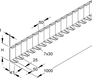 Trennsteg mit flexibler Segmenteinteilung, mit Systemlochung im Bodenflansch und zusätzlichem Umbug zum Schutz der Kabel beim Kabelzug, für begehbare Kabelrinnen, zur flexiblen horizontalen Richtungsanpassung, leichtes ablängen (gratfrei) im Segmentraster von 50 mm möglich, zur stufenlosen Einteilung der Rinnenbreite und zur Trennung von Kabeln und Leitungen mit unterschiedlichen Spannungen und Funktionen, einschließlich anteilmäßigen Befestigungszubehör. Mindestanzahl an Trennstegen zur Unterstützung des begehbaren Deckels: Deckelbreite 100 mm = 0 Stück Deckelbreite 200 mm = 0 Stück Deckelbreite 300 mm = 1 Stück bei einer max. Fachgröße von 200 mm Deckelbreite 400 mm = 1 Stück bei einer max. Fachgröße von 200 mm Deckelbreite 500 mm = 2 Stück bei einer max. Fachgröße von 200 mm Deckelbreite 600 mm = 2 Stück bei einer max. Fachgröße von 200 mm Der Potentialausgleich erfolgt durch Verschrauben mit der Kabelrinne.