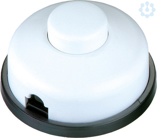 Tret-Zwischenschalter Serie 8009 6(2)A 250V Ausschalter, 1polig Gehäuse: weiß / Knopf: weiß Gehäuse-Schnappmontage, Zugentlastung geschraubt, Schraubkontakte, 2 Verbindungsklemmen, für 2- und 3-adrige Kabel. Für sekundärseitigem schalten von Halogenleuchten.