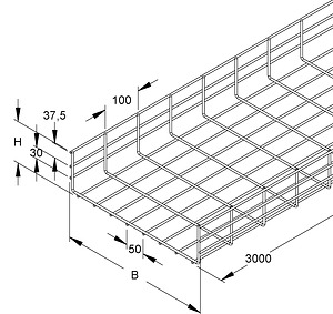 Gitterrinne, nach DIN EN 61537, aus Stahldraht, verstärkte Ausführung, Stoßstellenverbinder müssen gesondert bestellt werden.