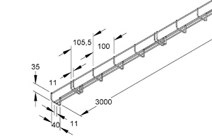 Gitterrinne, nach DIN EN 61537, aus Stahldraht, Stoßstellenverbinder müssen gesondert bestellt werden.
