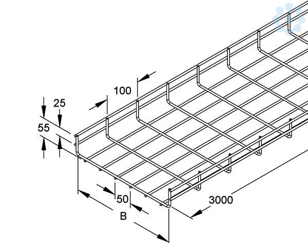 Gitterrinne, U-förmig, 54x70x3000 mm, DS: quer 3,9 mm längs 3,9 mm, Stahl, galvanisch verzinkt DIN EN ISO 2081, blaupass