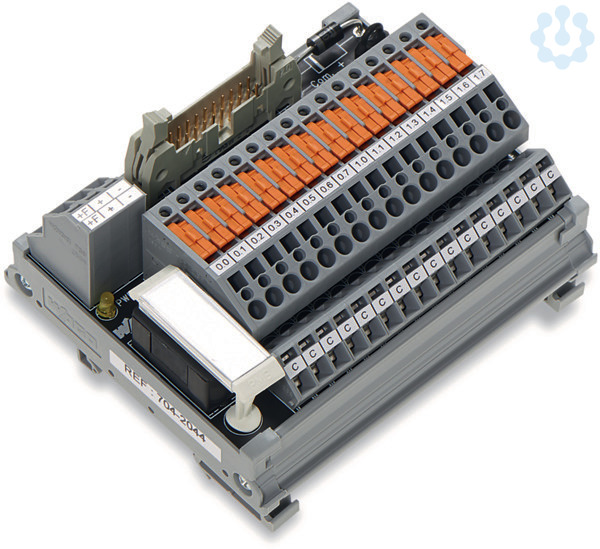 Übergabemodul für Systemverkabelung. Steckverbinder gemäß DIN 41651. Stiftleiste. 20-polig. 16-Kanal-Digitalein- oder -ausgang. 2-Leiter-Anschluss. im Montagesockel