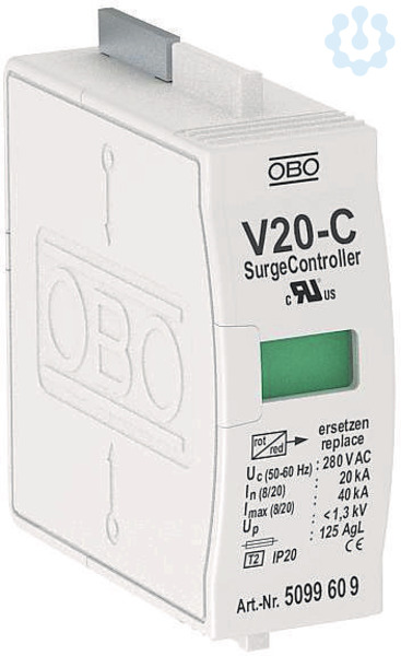 SurgeController Oberteil Steckbares Oberteil, Oberteil ohne Werkzeug vom Unterteil zu trennen, Inkl. thermischer und dynamischer, Abtrennvorrichtung und optischer Defektanzeige, Hohe Stromleitfähigkeit bei langer Lebensdauer