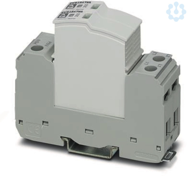 Steckbarer Überspannungsableiter, gem. Typ 2 / Class II, für 2-phasige Stromversorgungsnetze mit kombiniert verlegtem PE und N in einem Leiter (3-Leitersystem: L1, L2, PEN), mit Fernmeldekontakt.
