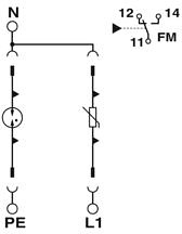 Steckbarer Überspannungsableiter, gem. Typ 2 / Class II, für 1-phasige Stromversorgungsnetze mit separatem N und PE (3-Leitersystem: L1, N, PE), mit Fernmeldekontakt.