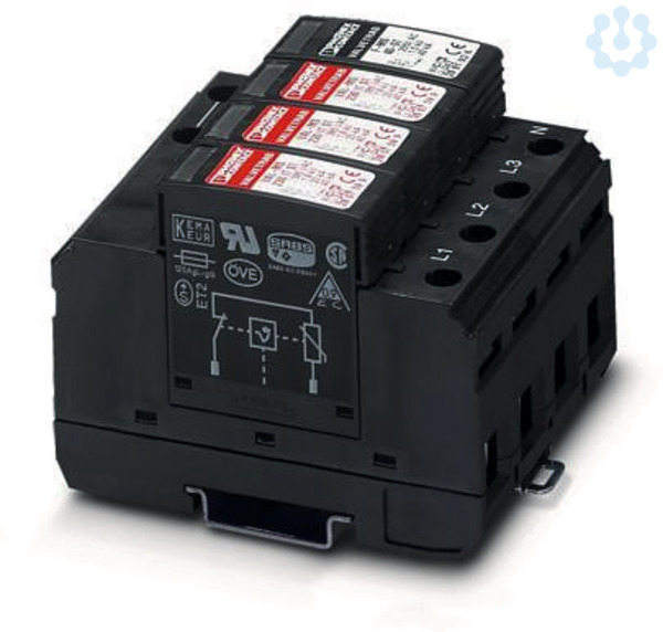 Überspannungsableiter bestehend aus Basiselement und Schutzsteckern, zur Montage auf NS 35/7,5, Nennspannung: 230 V AC, 3 + 1-Schaltung