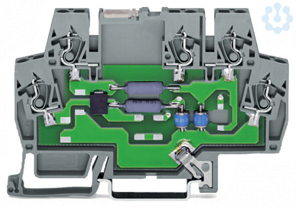Überspannungsschutzmodul für Signaltechnik. Nennspannung DC 24 V. für 2 Signalpfade mit gemeinsamer Ableitung. für symmetrische Schnittstellen. 2-stufig. Baubreite 6 mm. 2,50 mm²
