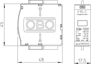 Das Oberteil des V10 Überspannungsableiters dient als Ersatzteil für die V10 SurgeController. Eine dynamische Abtrennvorrichtung sowie eine optische Statusanzeige zeichnen die modular steckbaren Ableiter aus. Dank der hochleistungsfähigen Varistoren beträgt das Ableitvermögen bis 20 kA (8/20) pro Pol. Der V 10-C Überspannungsableiter Typ 2+3 (Klasse C+D) nach EN 61643-11 (VDE 0675 Teil 6-11) ist zum Überspannungsschutz nach DIN VDE 0100 Teil 443 geeignet.