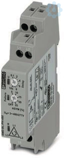 Überwachungsrelais zur Überwachung der Phasenfolge und Asymmetrie bei 208 ... 480 V AC / 120 ... 277 V AC von 3-phasigen Spannungen, konfigurierbare Asymmetrie, 1 Wechsler, mit Schraubanschluss